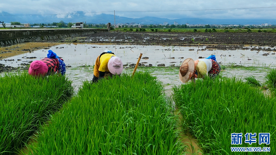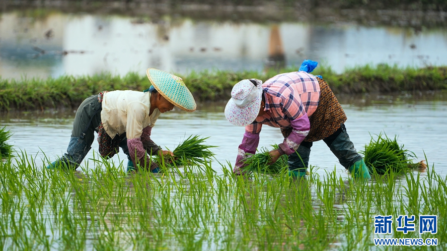 農戶們忙著插秧(6月1日攝)。新華網發(沙相 攝)