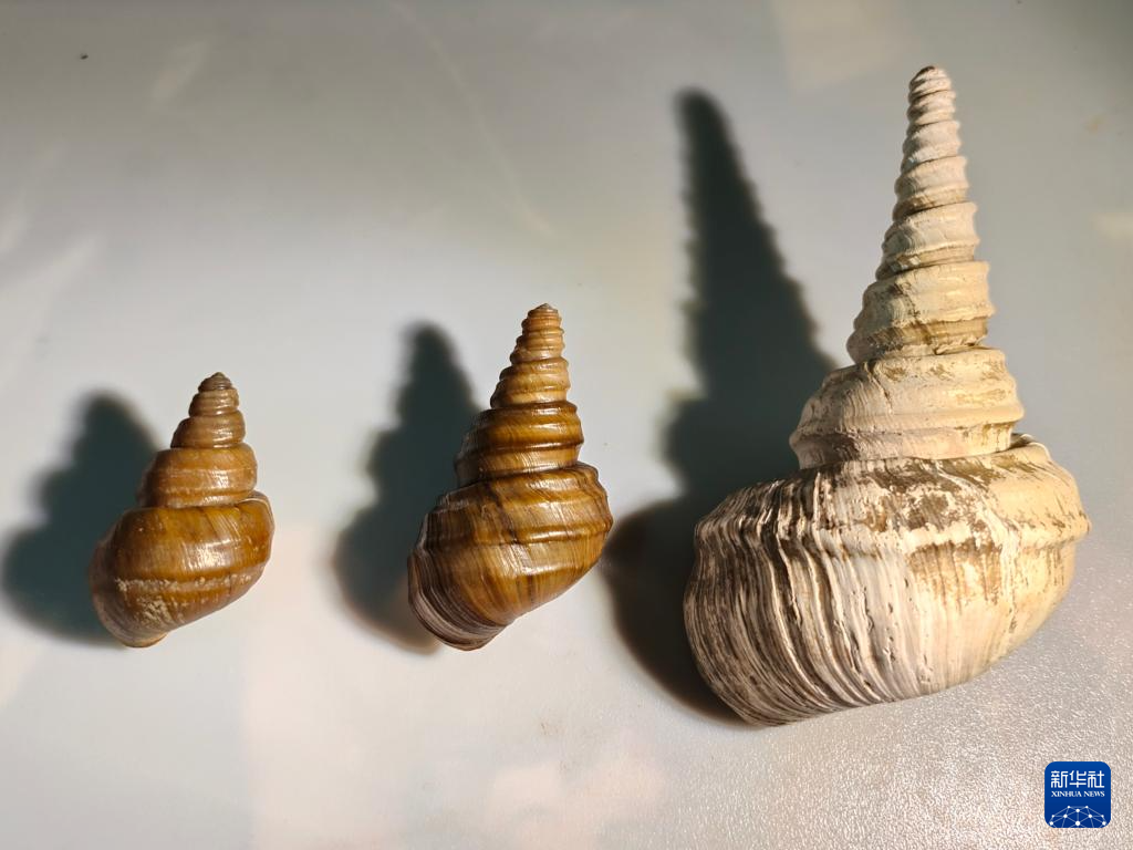 從左到右分別為:2019年采集的光肋環螺螄、2024年采集的光肋環螺螄、古代的光肋環螺螄。受訪者供圖