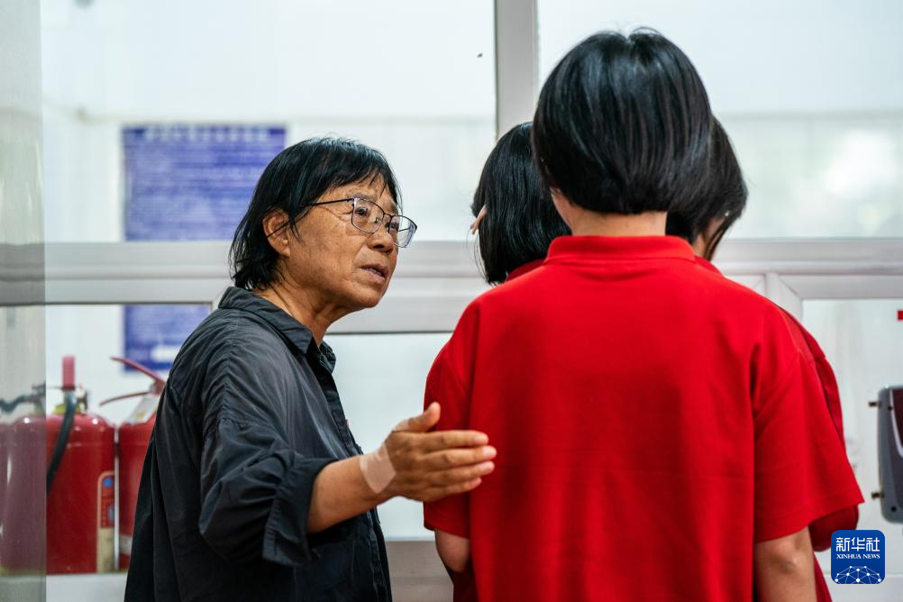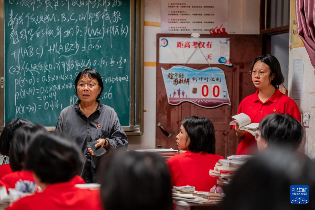 6月7日,張桂梅帶著低年級學生給準備出發參加高考的同學們加油鼓勁。
