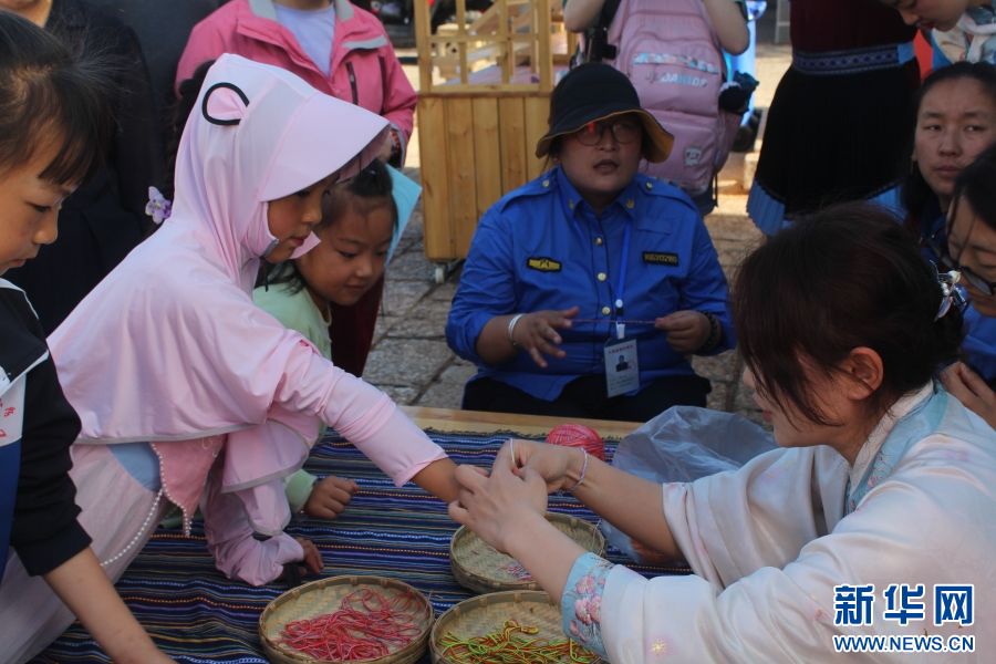 “和美古城·濃情端午”文化系列活動中,工作人員給小朋友贈送五彩線(6月8日攝)。新華網發(和新蘭 攝)
