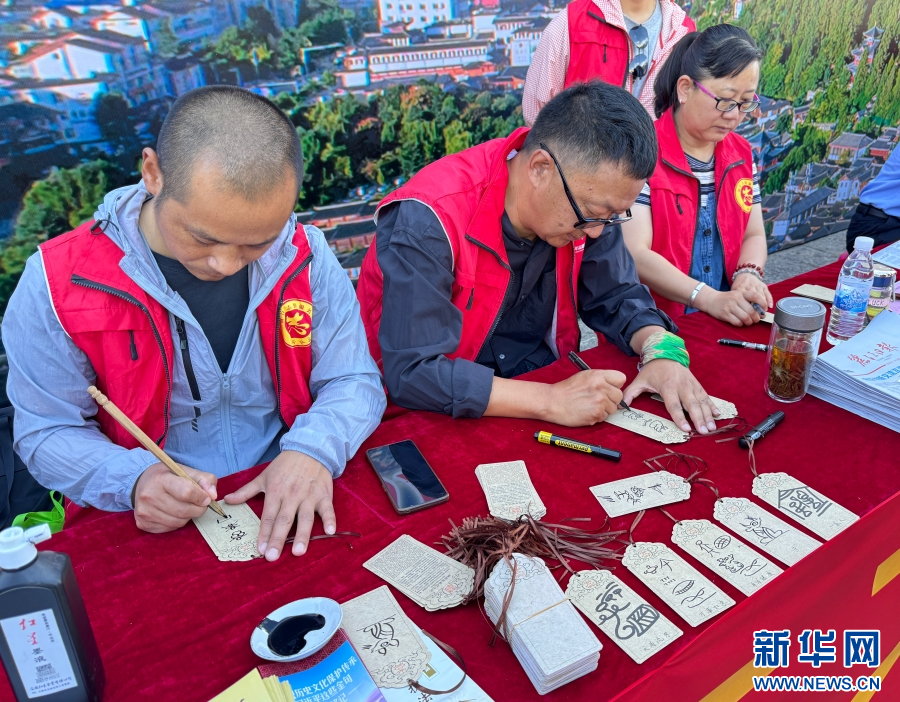 非遺傳承人現場書寫東巴文字(6月8日攝)。新華網發(和新蘭 攝)