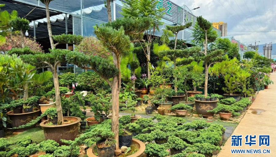 盆栽和苗木種類繁多(6月7日攝)。新華網發(董入榕攝)