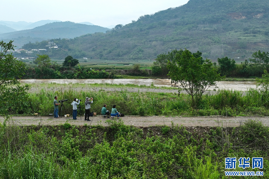 黃胸織布鳥筑巢吸引鳥類愛好者觀鳥(6月6日攝)。新華網發(昌寧縣融媒體中心供圖)