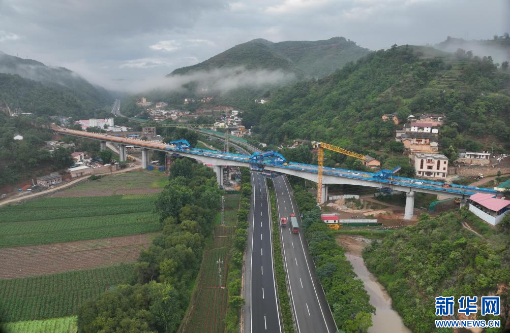 6月13日,渝昆高鐵臺子村一號大橋順利合龍。新華網發(劉榮 攝)