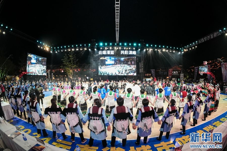 2023-2024云南省城市籃球聯賽總決賽現場的民族打跳表演(3月21日攝)。新華網發(云南省城市籃球聯賽組委會 供圖)
