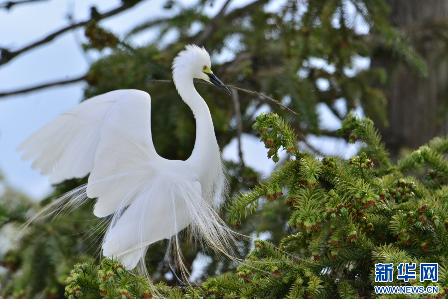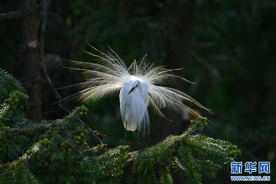 白鷺展示漂亮的蓑羽(6月11日攝)。新華網發(昌寧縣融媒體中心供圖)