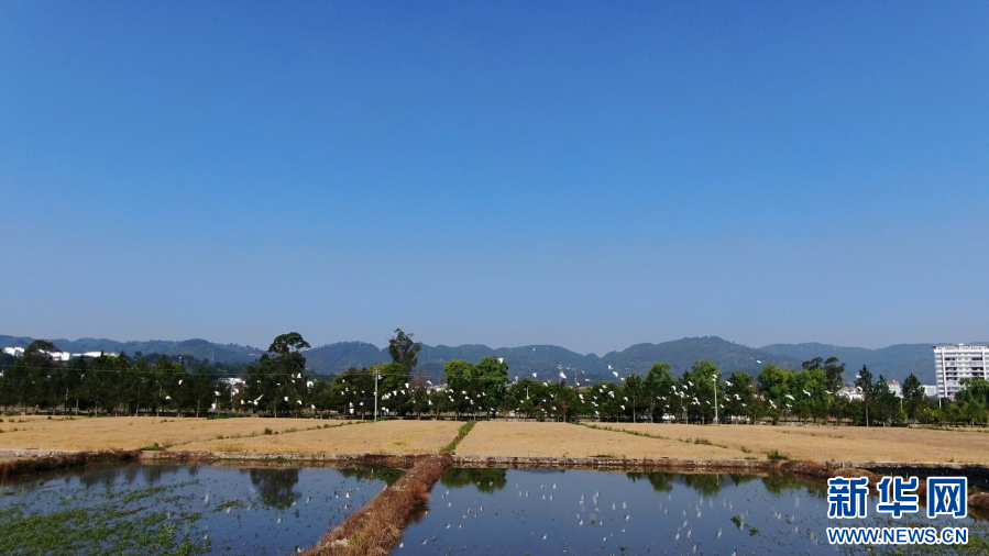 成群白鷺覓食(6月11日攝)。新華網發(昌寧縣融媒體中心供圖)