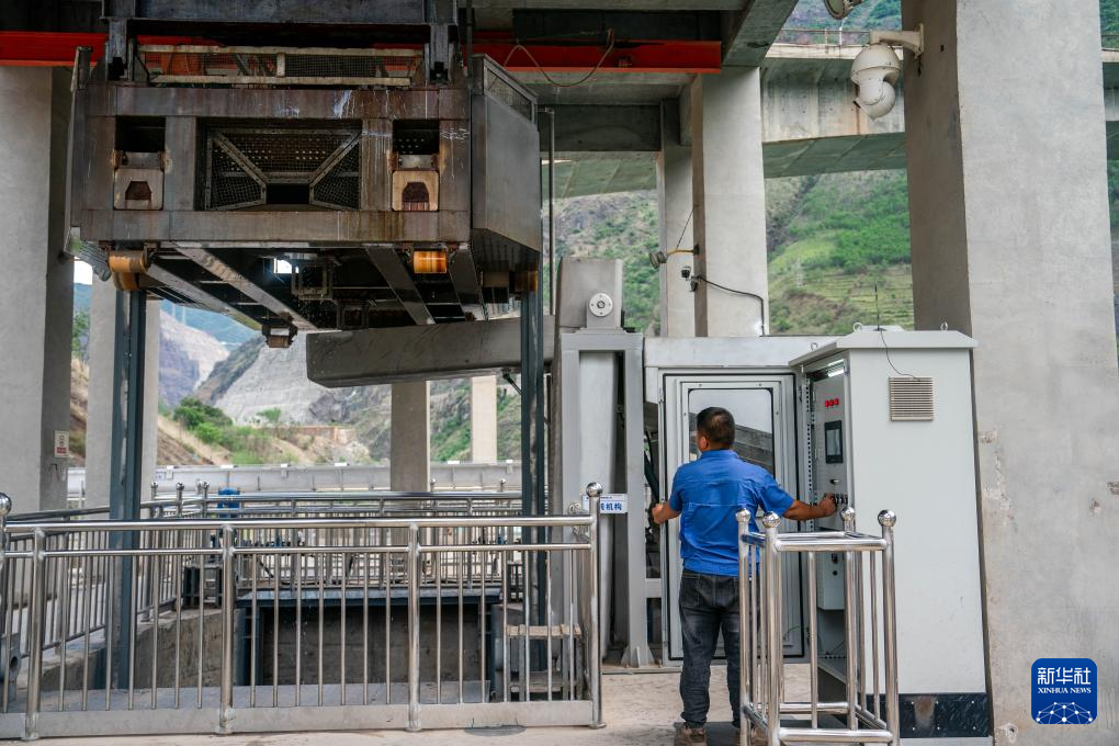 6月19日,工作人員在白鶴灘水電站集魚站作業。