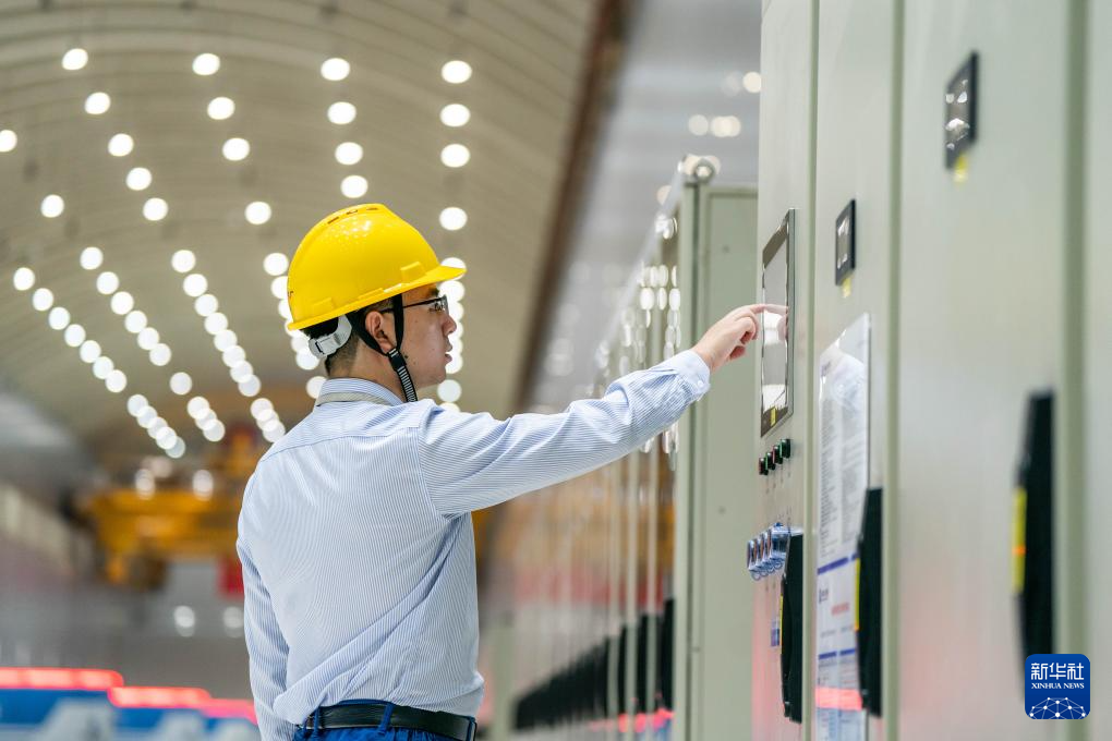 6月19日,工作人員在白鶴灘水電站左岸地下廠房巡檢。