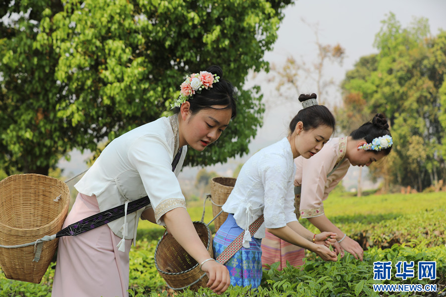 采摘大白茶。新華網發(景谷縣融媒體中心供圖)