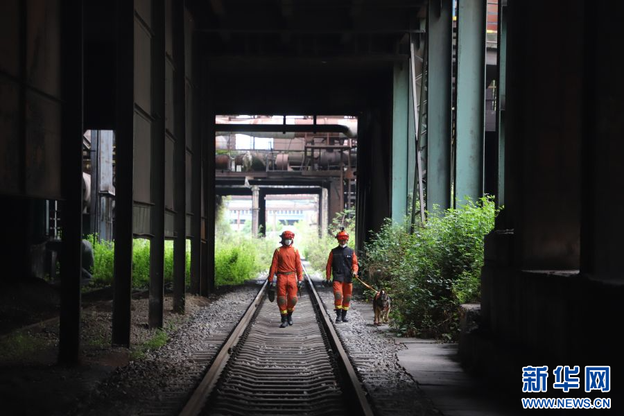 消防救援犬搜索失聯人員(6月18日攝)。新華網發(朱云聰 攝)