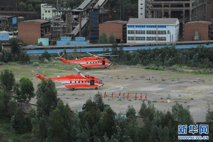 直升機實施救援人員機降(6月18日攝)。新華網發(王維爽 攝)