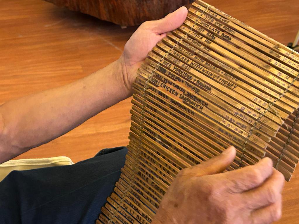 中途客棧老板馮德芳展示早期用的英文菜單