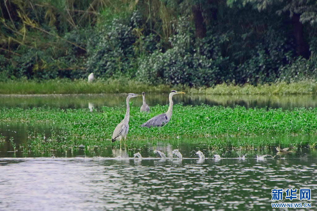 湖泉生態園里的蒼鷺和夜鶯(6月28日攝)。新華網發(趙樹龍 攝)