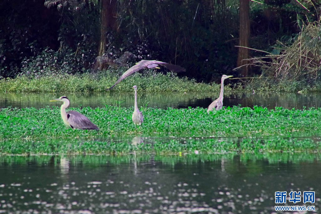湖泉生態園里的蒼鷺和白鷺(6月28日攝)。新華網發(趙樹龍 攝)