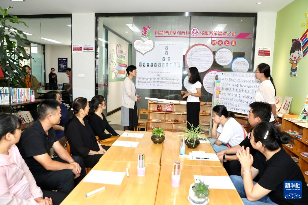 7月14日,在云南玉溪澄江市擁暉社區“童成長:家庭教育服務”項目點,參加親職教育工作坊的家長與志愿者培訓師現場情景演繹一場家庭矛盾。新華社發(夏永 攝)