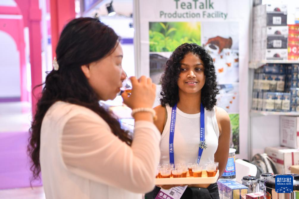7月23日,一名女士在第八屆中國—南亞博覽會南亞館品嘗斯里蘭卡紅茶。新華社記者 彭奕凱 攝