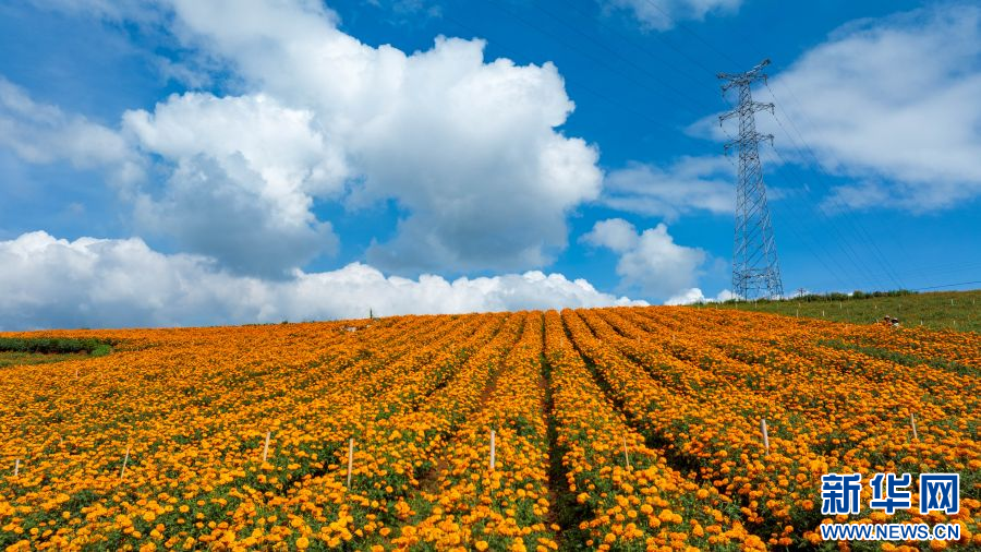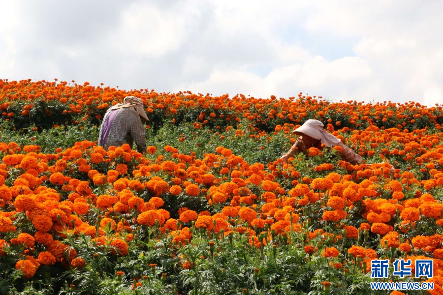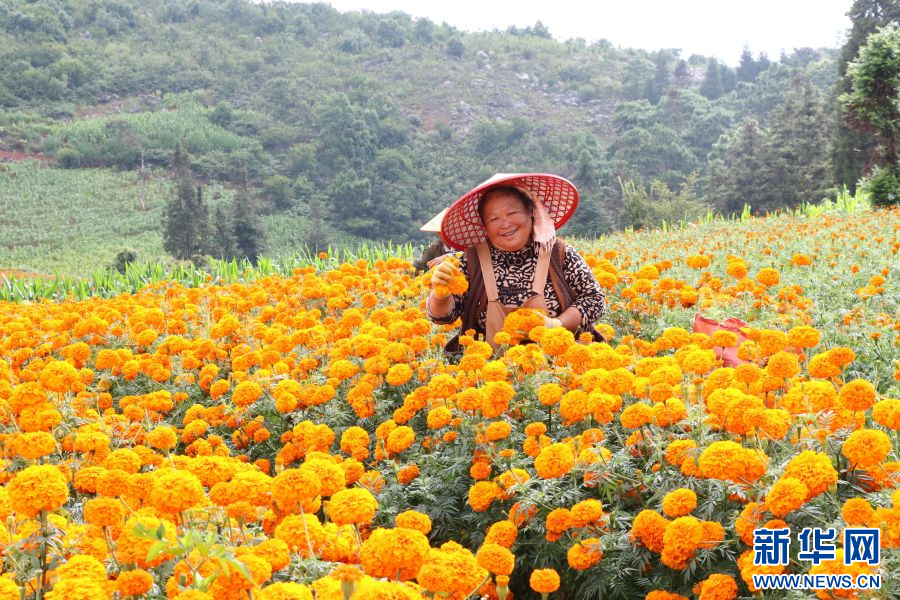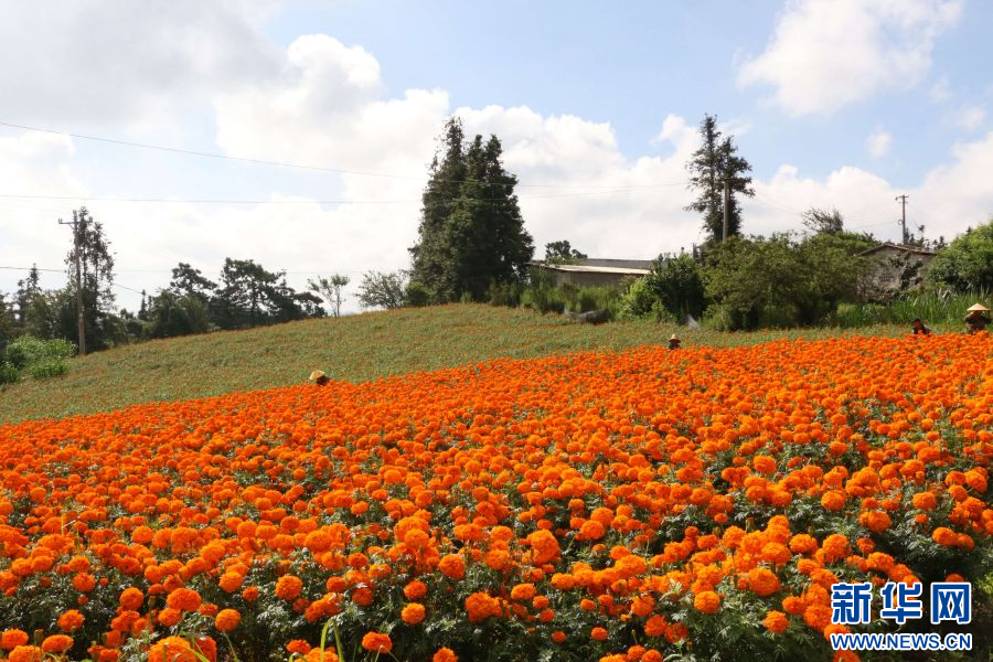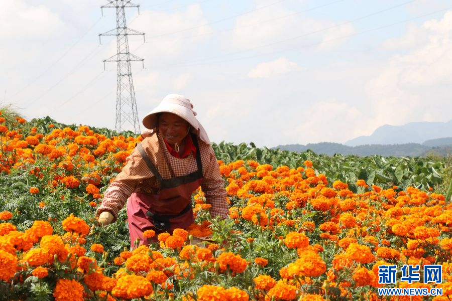 村民采收萬壽菊(7月24日攝)。新華網發(楊玥莞 攝)