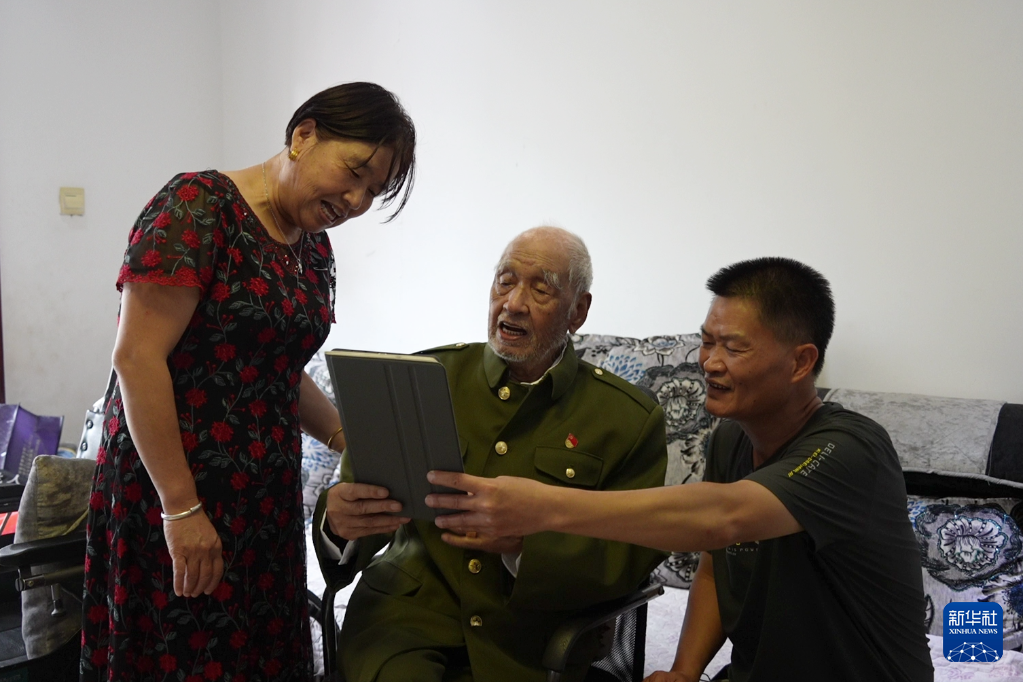 7月29日,在云南省大理白族自治州漾濞彝族自治縣民政和退役軍人事務局工作人員的幫助下,姜溪東老人通過視頻連線見到了遠在山東的親人,老人激動不已。