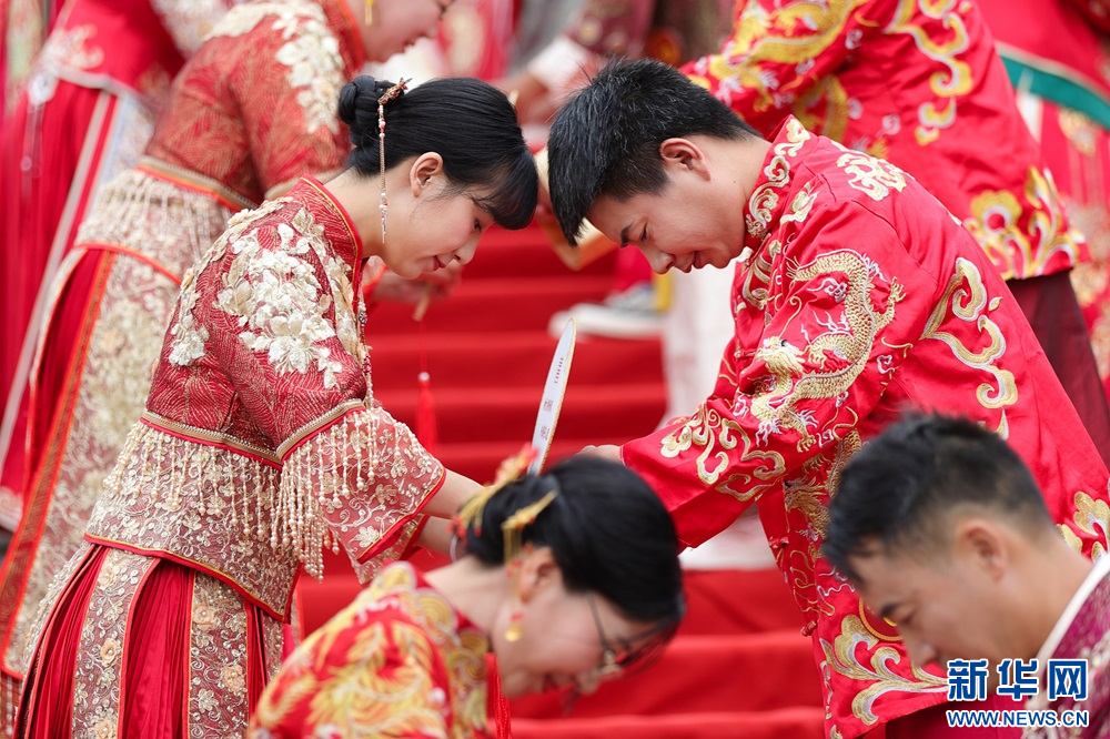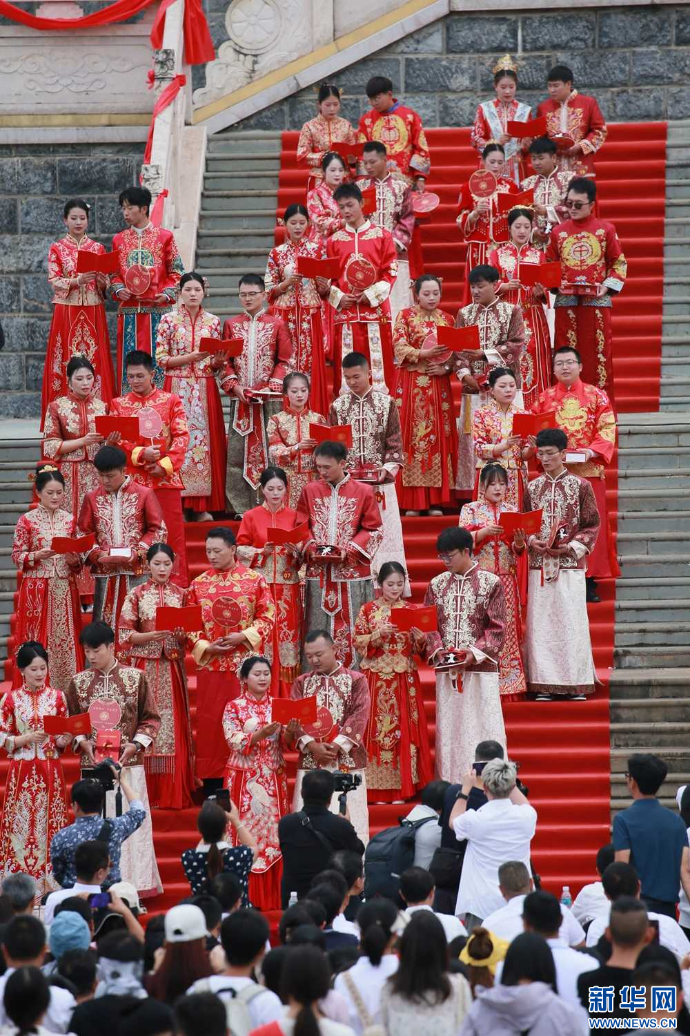 8月10日,參加婚禮的新人及嘉賓在活動現場。新華網發(李義 攝)