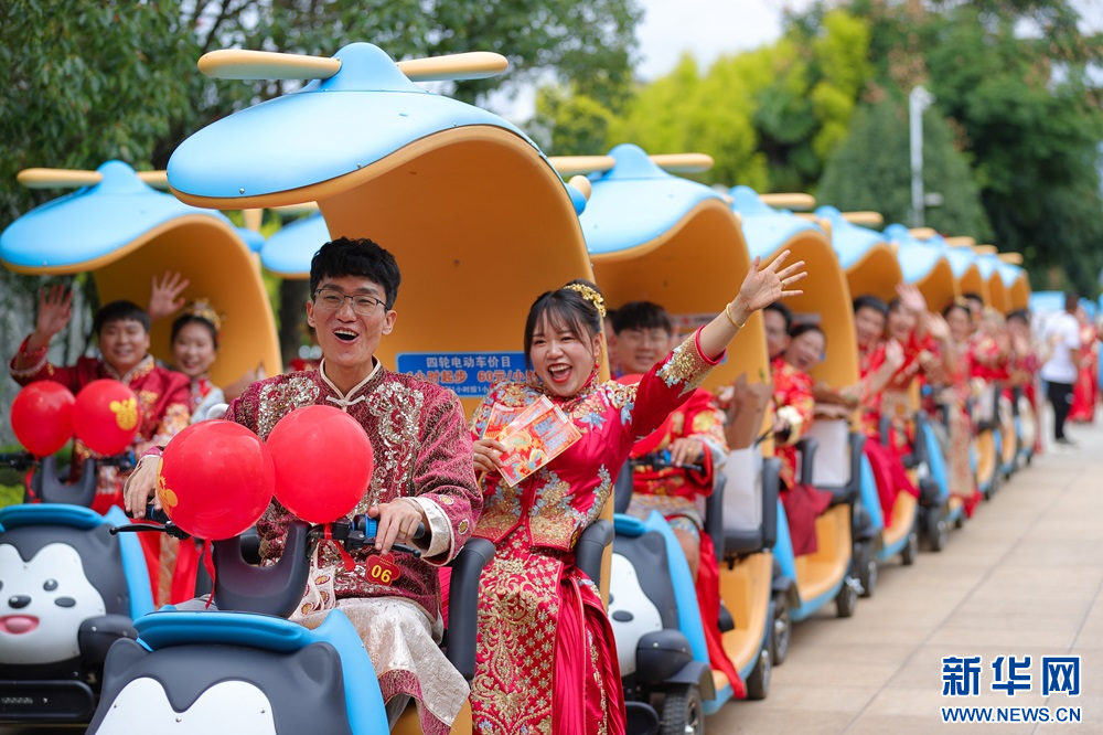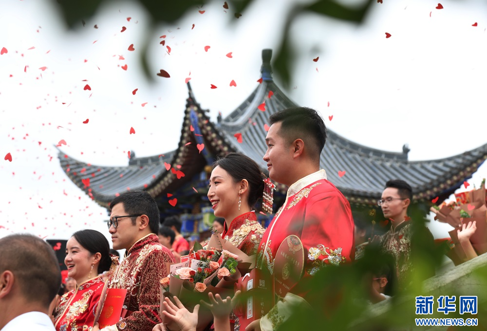 8月10日,參加婚禮的新人及嘉賓在活動現場。新華網發(陳暢 攝)