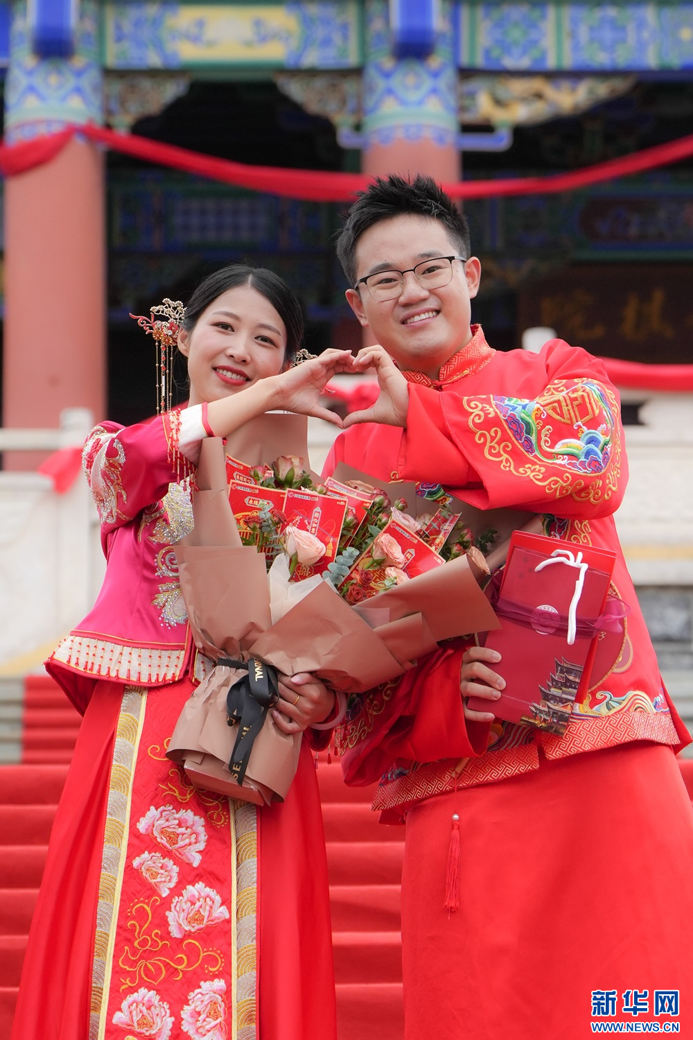 8月10日,參加婚禮的新人及嘉賓在活動現場。新華網發(劉壽福 攝)