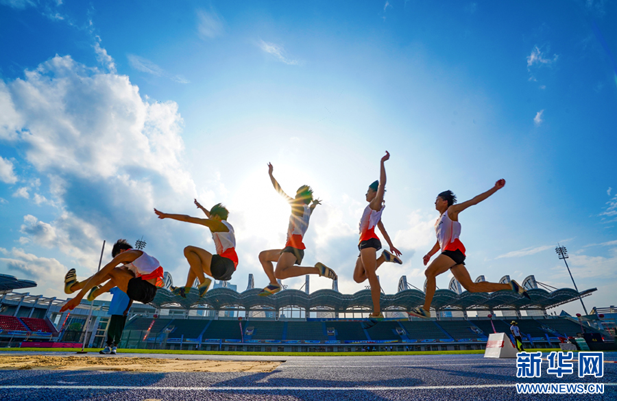 8月14日,田徑項目比賽中,參賽選手正在跳遠。新華網發(陶家淇 攝)