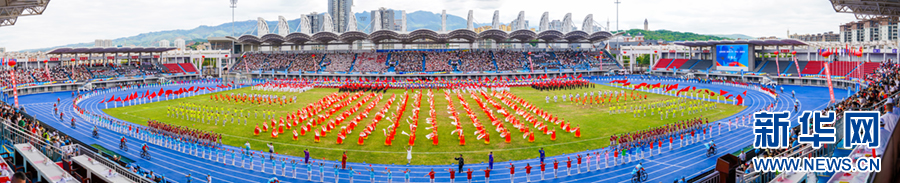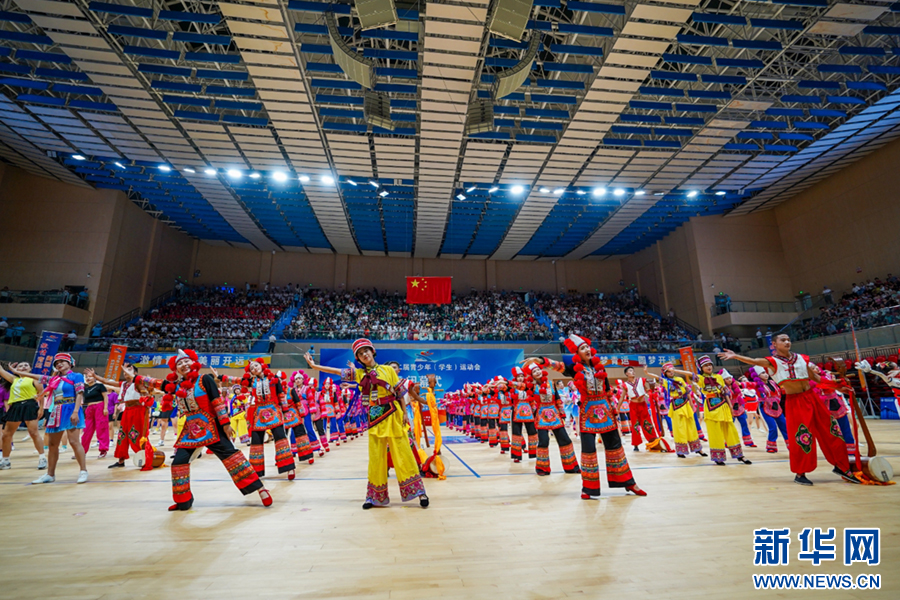 8月10日,云南省第二屆青少年(學生)運動會開幕式表演現場。新華網發(陶家淇 攝)