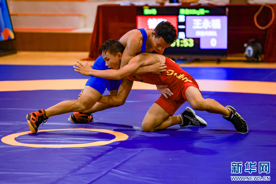 8月12日,摔跤項目比賽現場。新華網發(楊斐然 攝)