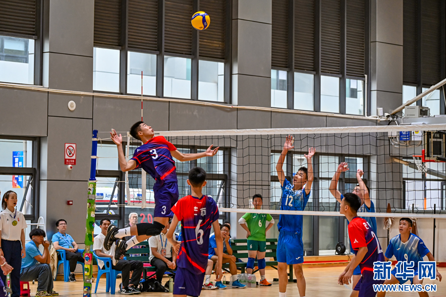 8月11日,排球項目比賽中,德宏州芒市隊隊員扣球瞬間。新華網發(趙東霖 攝)