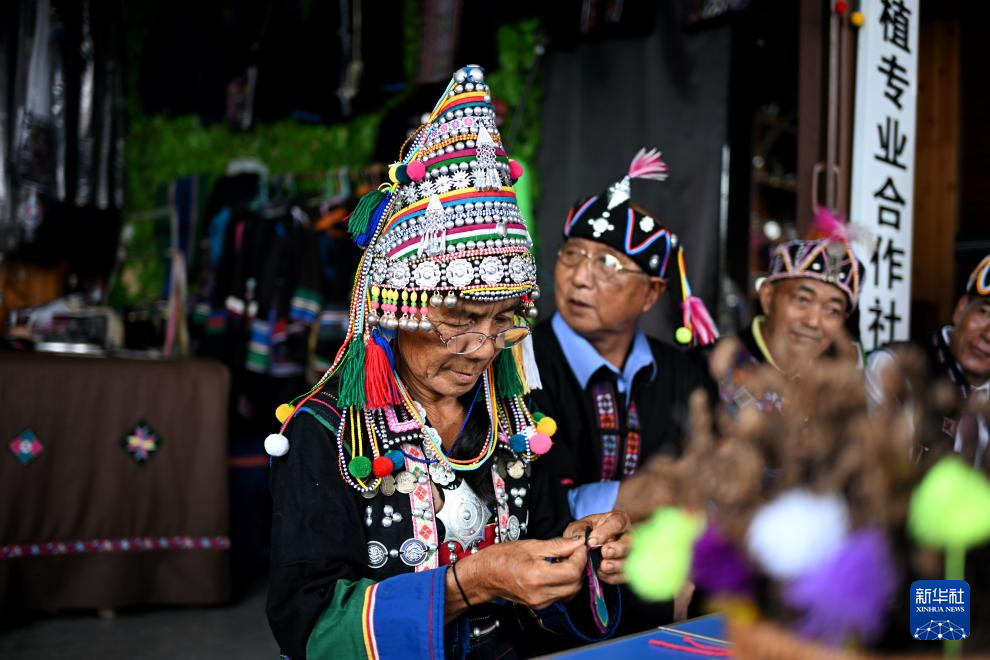 8月22日,大卡老寨的哈尼族婦女在制作跳蚤草香包。新華社記者辛悅衛 攝