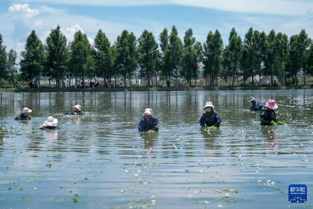 8月,正是采收海菜花的時節。在洱源縣右所鎮的東湖濕地,波光粼粼的湖面上,一朵朵白色小花隨風搖擺。村民們有的劃著小船、有的直接蹚入水中采收海菜花,綠水青山間呈現出一幅別樣的秋收“豐”景。右所鎮松曲村黨總支書記芮龍佳說,種植海菜花收益高,每畝每年有近7000元收入。