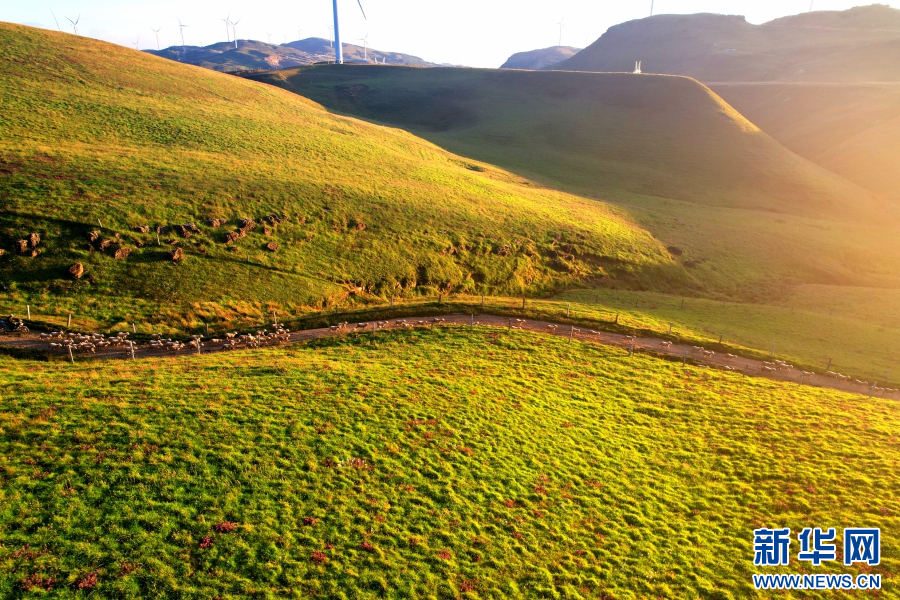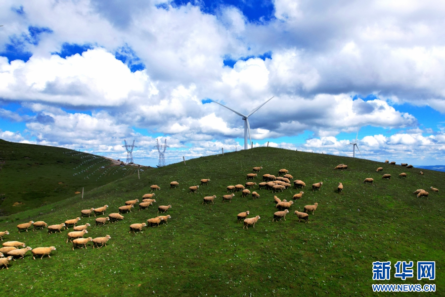 航拍草甸上的羊群(8月17日攝)。新華網發(羅朝俊  攝)
