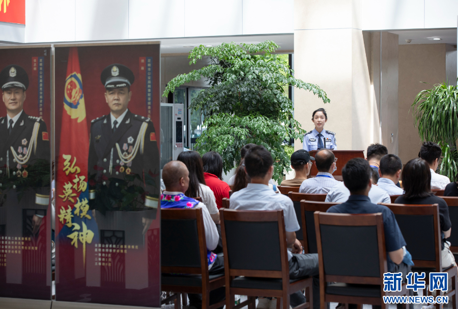 民警梁自厚進行反詐經驗分享(攝于8月22日)。新華網發(供圖)