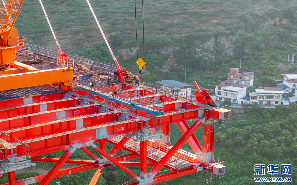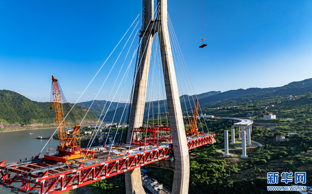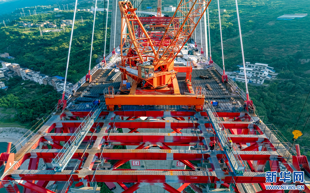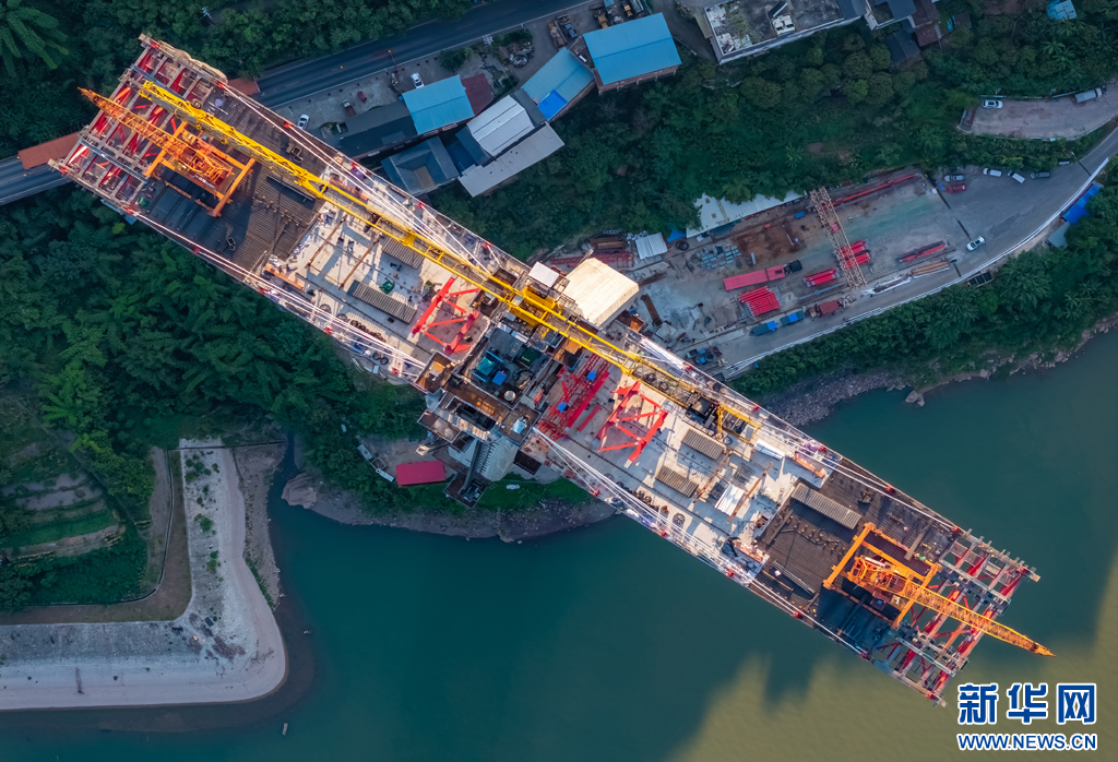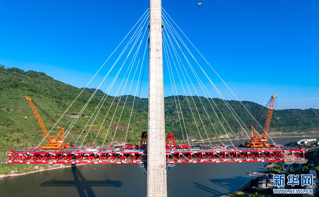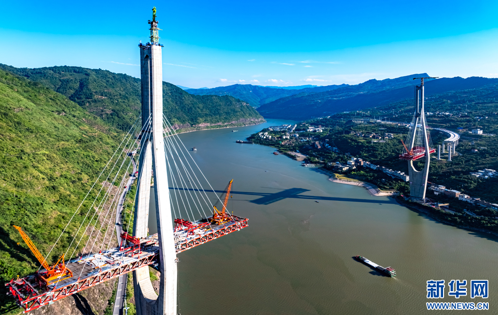 據了解,新市金沙江特大橋位于云南省綏江縣南岸鎮與四川省屏山縣新市鎮交界處,是連接川滇兩省的重要交通樞紐,該橋主塔高297.51米,主跨680米,計劃于2025年3月底實現全橋合龍,其建成通車后,對加強區域合作,促進地方經濟社會發展具有重要意義。(曾三東 孫曉楠 陳昳穎 攝影報道)