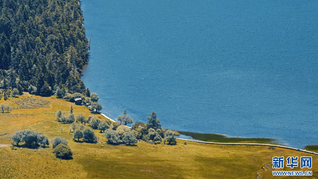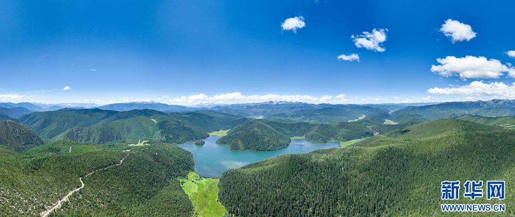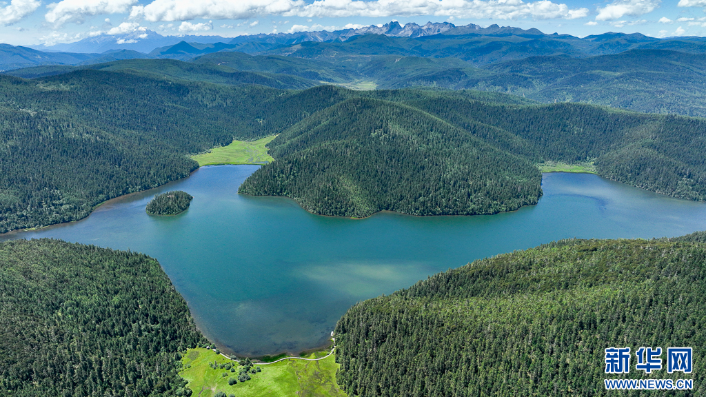 航拍普達措景區(7月31日攝)。新華網發 劉東 攝