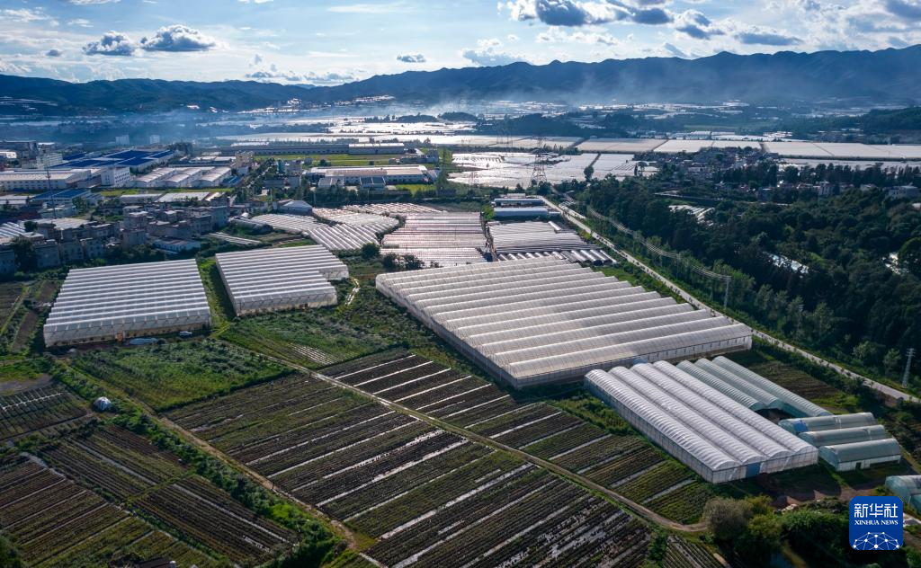 這是8月23日拍攝的云南晉寧花卉產業現代化示范園(無人機照片)。新華社記者 陳欣波 攝