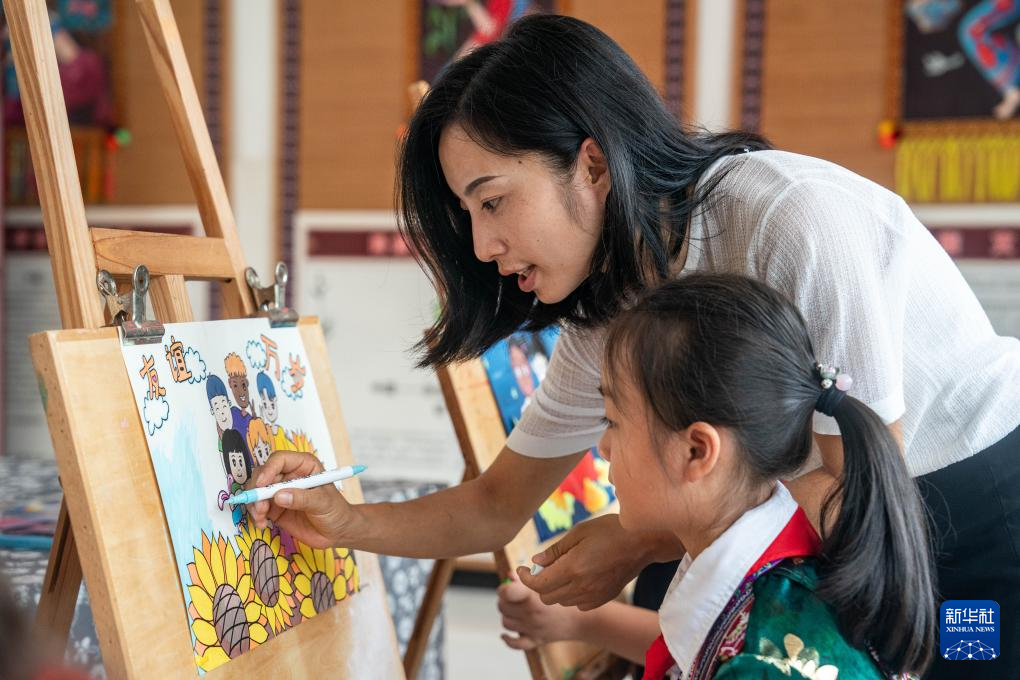 9月2日,在中國-赤道幾內亞友誼小學,老師在指導學生繪畫。新華社記者 胡超 攝