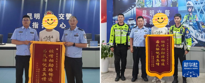 為昆明交警與當天參與護送的民輔警送來了錦旗