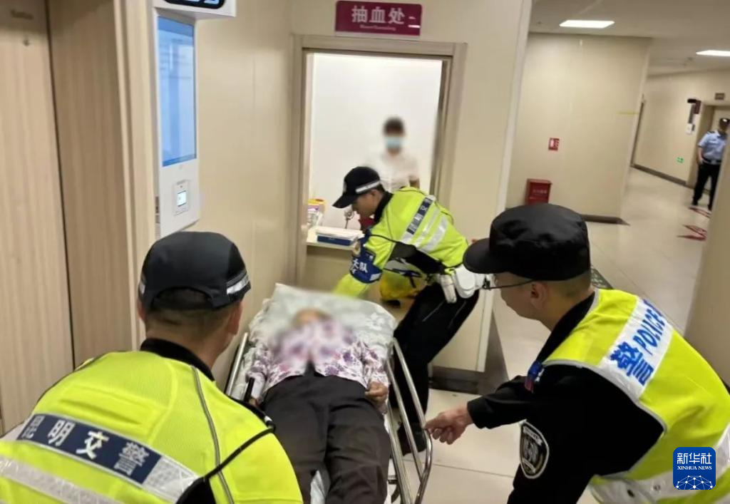 民警與騎警將老人推到急診室。