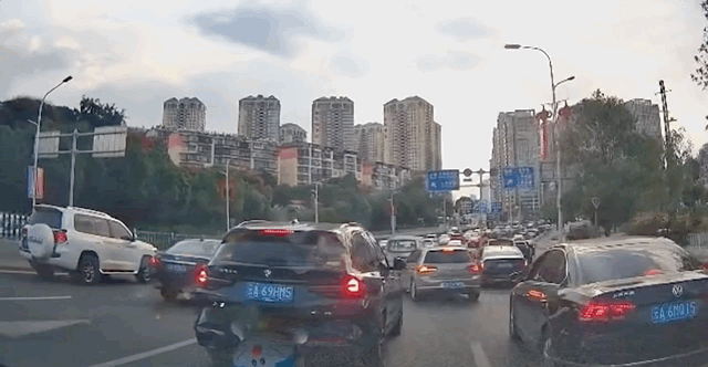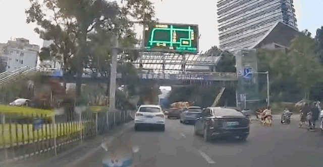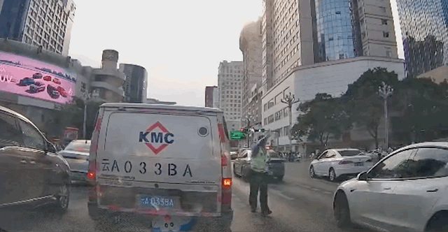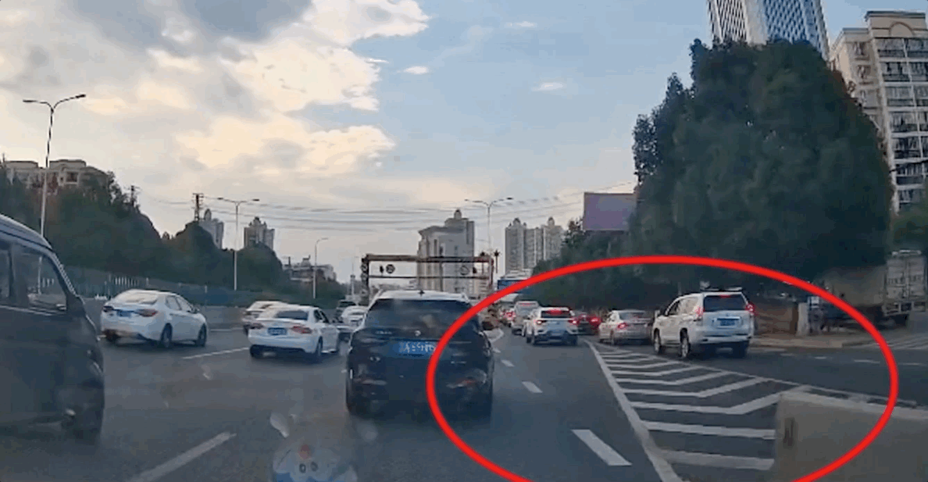 擁堵路段出現了一條通道