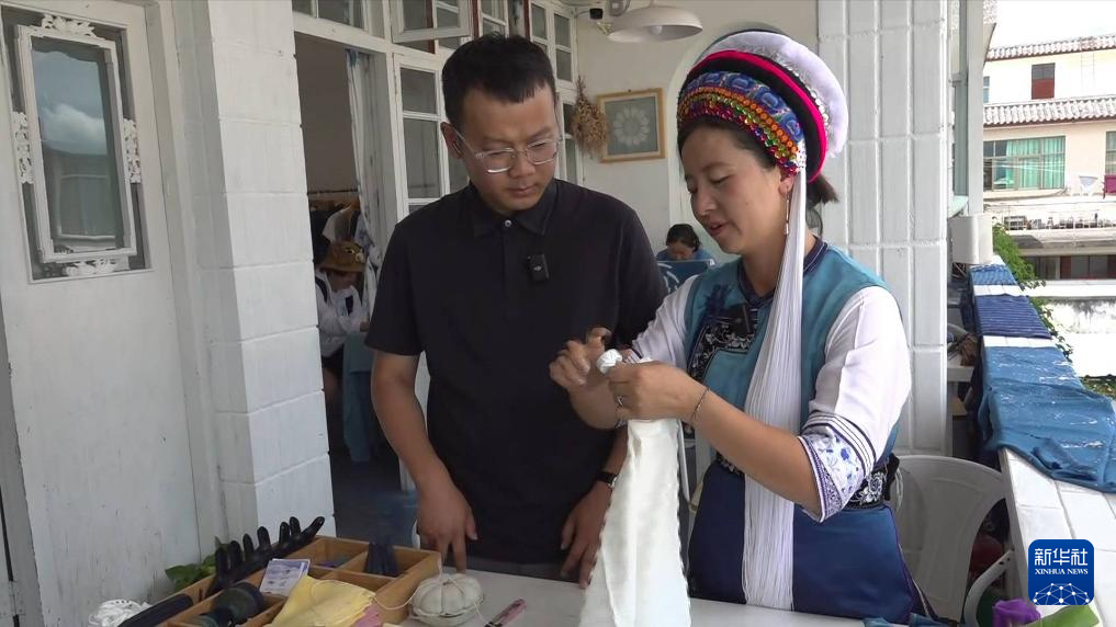 記者來到大理喜洲古鎮,體驗白族扎染工藝。