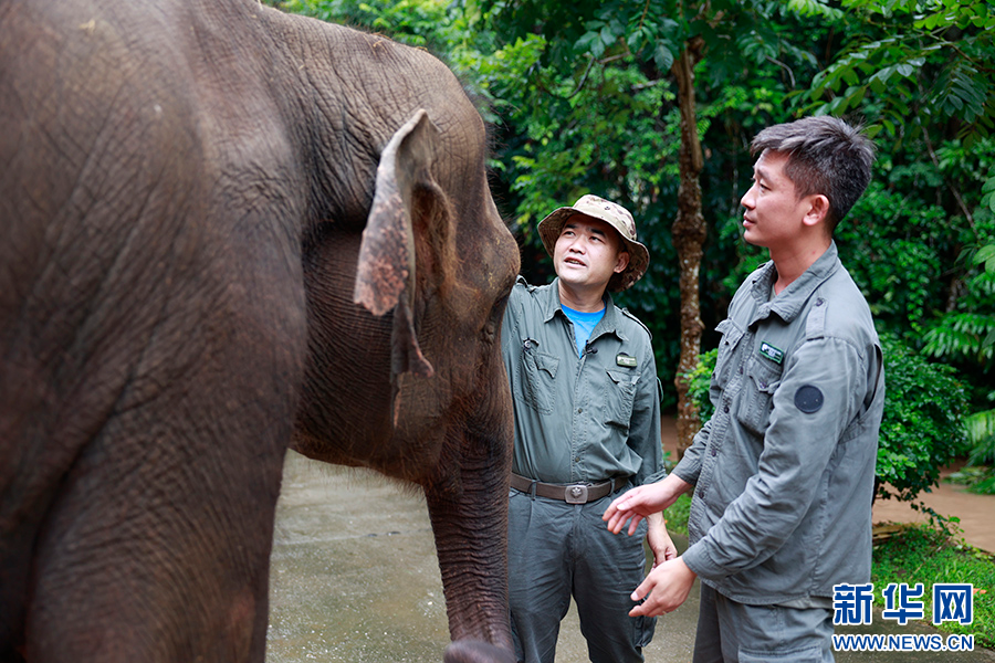 8月1日,“象爸爸”王波(右)和陳繼銘(左)一起照顧羊妞。新華網發 劉云 攝