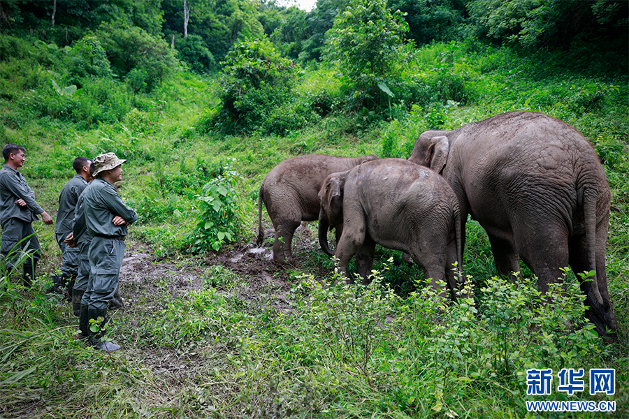 8月1日,陳繼銘和其他象爸爸帶著大象開展野化訓練。新華網發 劉云 攝
