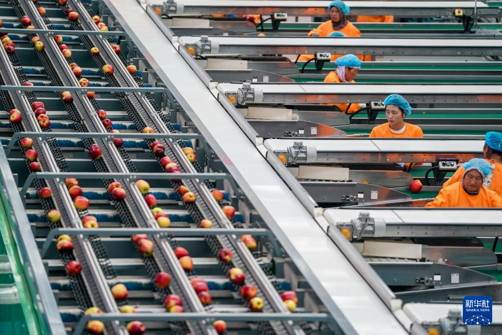 9月29日,工作人員在昭通市超越蘋果基地蘋果包裝車間工作。新華社記者 陳欣波 攝