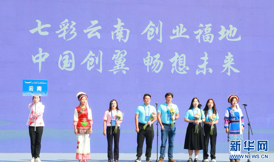 云南代表隊亮相“中國創翼”創業大賽開幕式。(云南省人力資源和社會保障廳供圖)