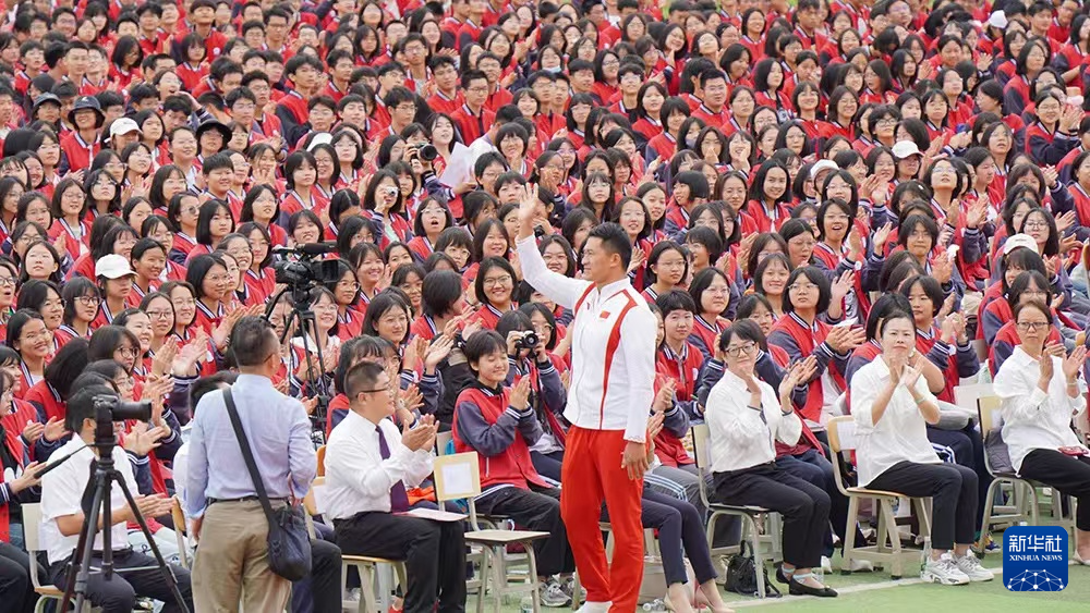 9月8日,巴黎奧運會皮劃艇冠軍劉浩為玉溪一中學生上開學第一課。(受訪者供圖)