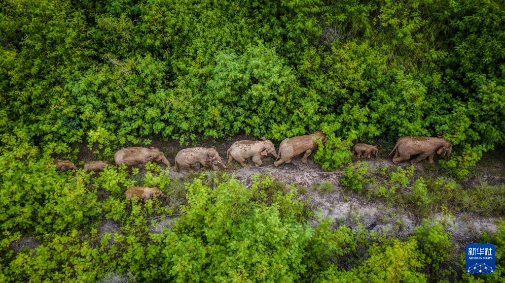 在云南省玉溪市元江縣境內拍攝的象群(2021年8月9日攝,無人機照片)。新華社記者 胡超 攝