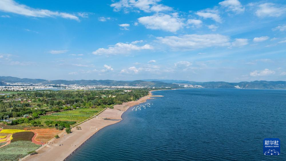 9月20日拍攝的撫仙湖一景(無人機照片)。新華社記者 胡超 攝