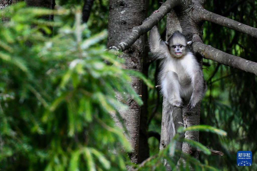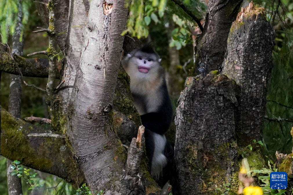 這是9月30日在滇金絲猴國家公園拍攝的滇金絲猴。新華社發(朱敬熹 攝)